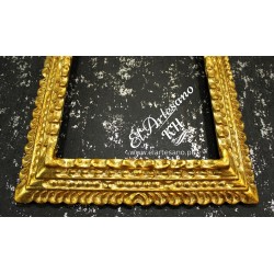 Stylish frame made of cedar wood with hand-carved ornaments. Covered with gold leaf with a precise gilding technique.
