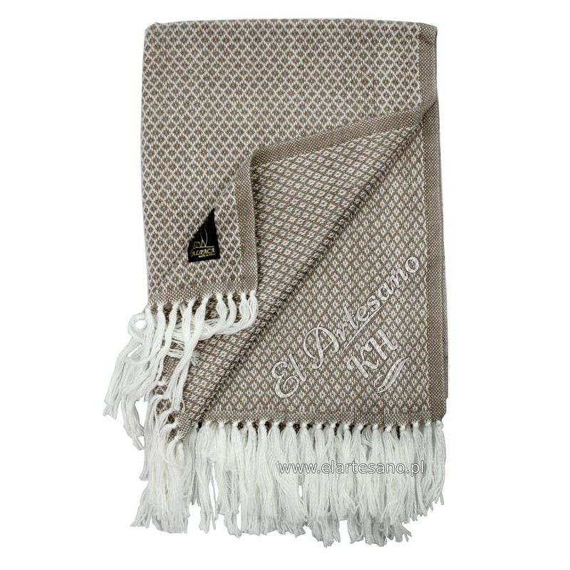 Chal, bufanda, blanco y beige diamantes, colección: Lana de Alpaca