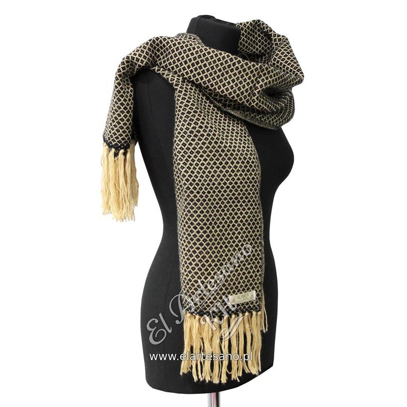 Chal, bufanda, crema y negro diamantes, colección: Lana de Alpaca