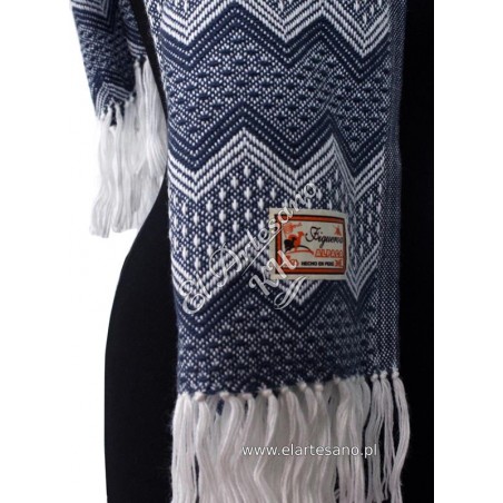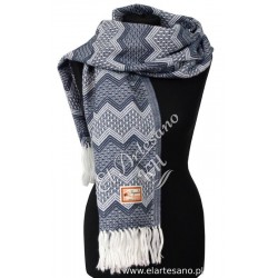 Chal, bufanda, blanco azul real zigzag, colección: Lana de Alpaca