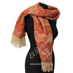 Chal, bufanda, blanco naranja zigzag, colección: Lana de Alpaca