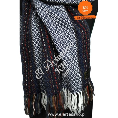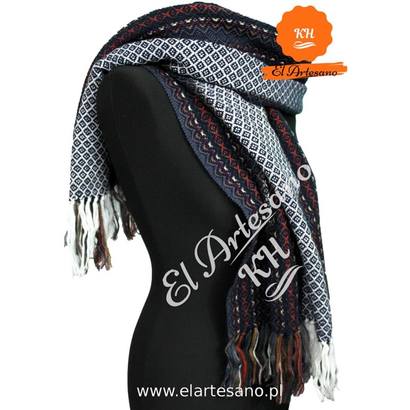 Szal granatowy z wełny alpaki, ciepły, duży, prezent dla niej