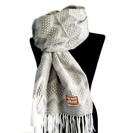 Chal, bufanda blanco y gris zigzag, colección: Lana de Alpaca