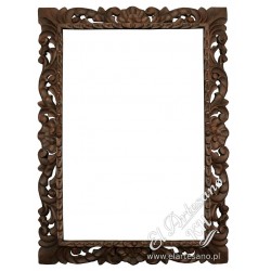 El marco calado está hecho de madera de cedro con adornos tallados a mano, pintado en color marrón / negro, barnizado.