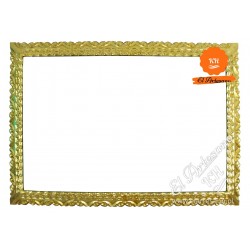 Rama stylowa wykonana na bazie drewna cedrowego z ręcznie rzeźbionymi ornamentami. Pokryta płatkami złota (szlagmetal) precyzyjną techniką pozłotniczą.
