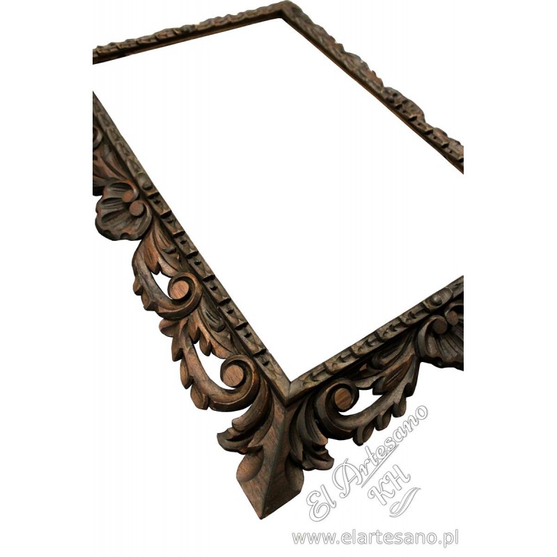 Stylowa rama ażurowa została wykonana na bazie drewna cedrowego z ręcznie rzeźbionymi ornamentami.