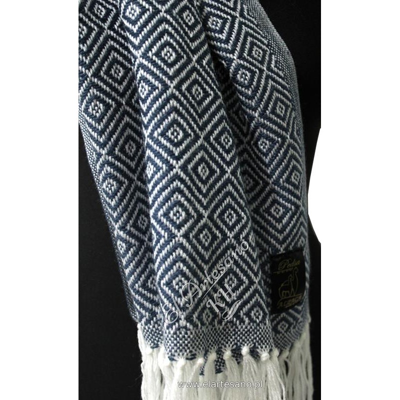 Szukasz idealnego szalika wełnianego na zimę? Oto on: duży, ciepły, miękki i hipoalergiczny szalik damski z wełny alpaki. Ten modny i oryginalny szal jest nie tylko piękny i jasne, ale także doskonale chroni przed chłodem. Wybierz jakość i styl - wybierz szalik z wełny alpaki! Szal biało-granatowy